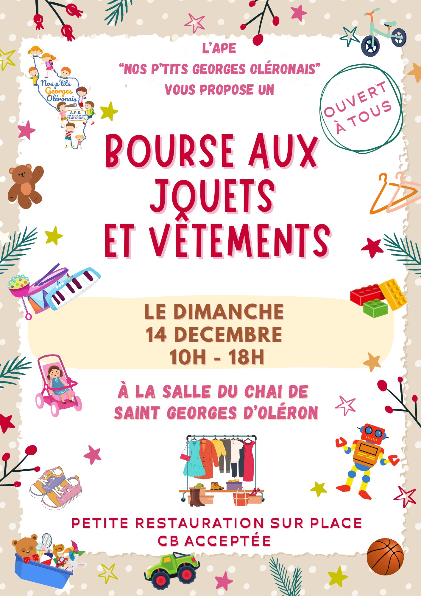 Bourse aux jouets et vêtements Salle des fêtes Le Chai89 rue des SportsChéray17190, Saint-Georges-d'OléronFrance